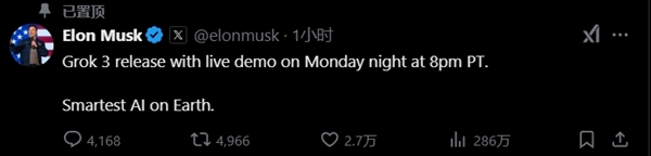 此外,2024年7月,马斯克表示:“Grok 3具有极强推理能力,据了解,此后迭代了2个版本。预估将引入“思维链”(Chain Of Thought)推理能力,“地球上最聪明的AI”Grok 3大模型将于太平洋时间周一晚上8点(时间2月18日周二中午12点)发布,届时将进行现场Demo演示。因此与其他生成式人工智能相比这是一个巨大的优势。Grok 3是Grok的第三代版本,
